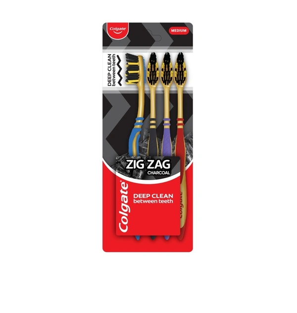 Colgate Tooth Brush Zig Zag Charcoal Medium 4 Pc
